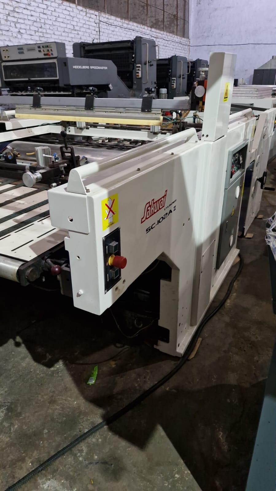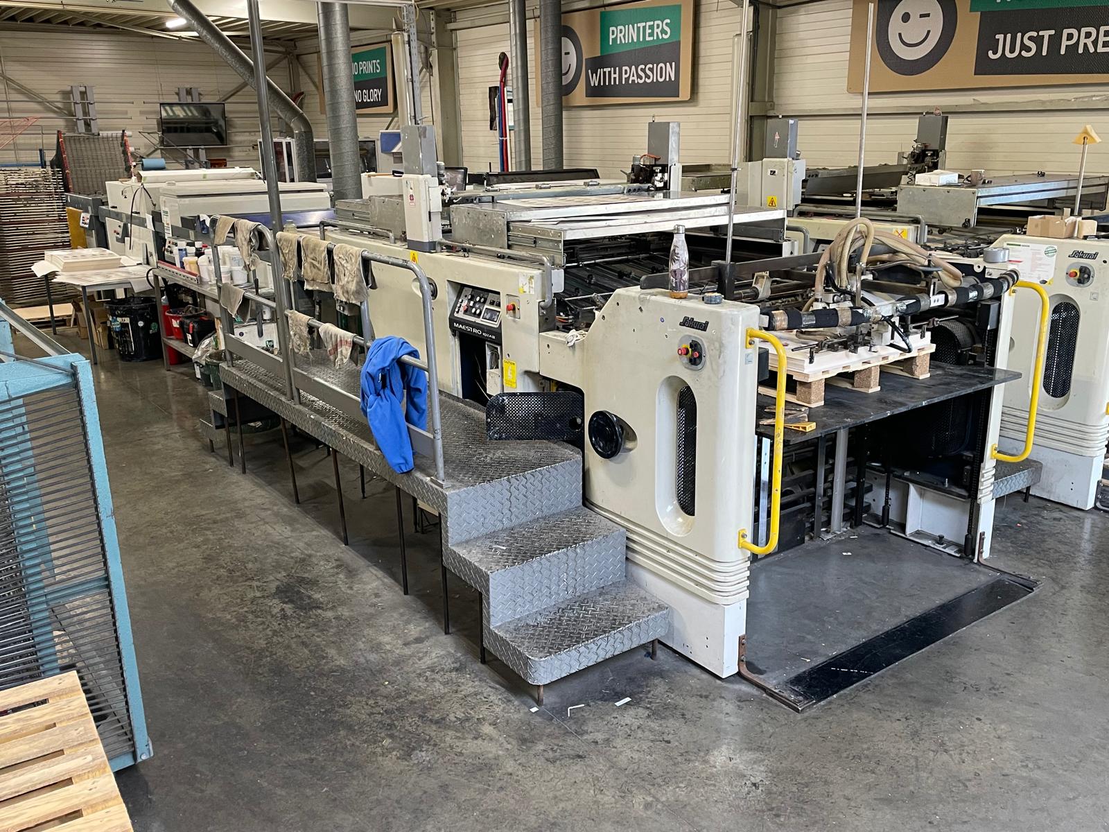 SCREEN PRINTING MACHINE. + Natgraph UV dryer with 2 lamps + Used Euroscreen Stacker Model: SERPLA “APA” Serial No.: 1980930170. fully automatic , Maximum & Minimum sheet size: 800 x 550 & 270 x 200 mm. front pick up stream feeder. 2 antistatic bars. HOT AIR, Electric transformer, Double Sheet Detector.
